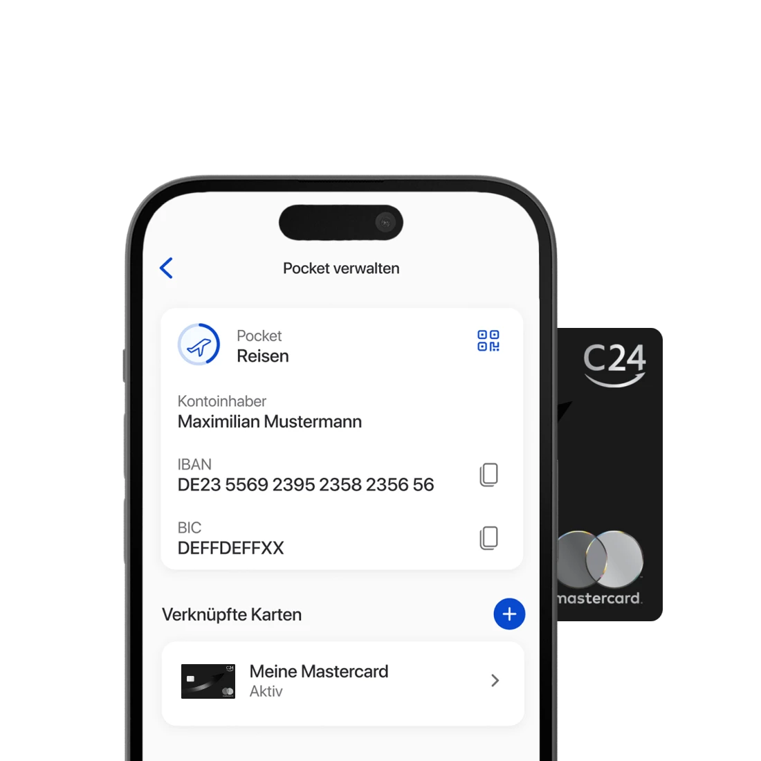 Verknüpfen Sie Ihre C24 Mastercard mit allen Konten oder Pockets